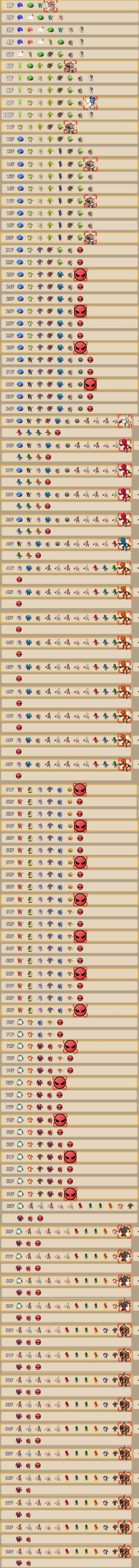 | モンスターテーブル | 序盤から強敵が多い | 30F以降大きな変化がない | 序盤から強敵が多い |